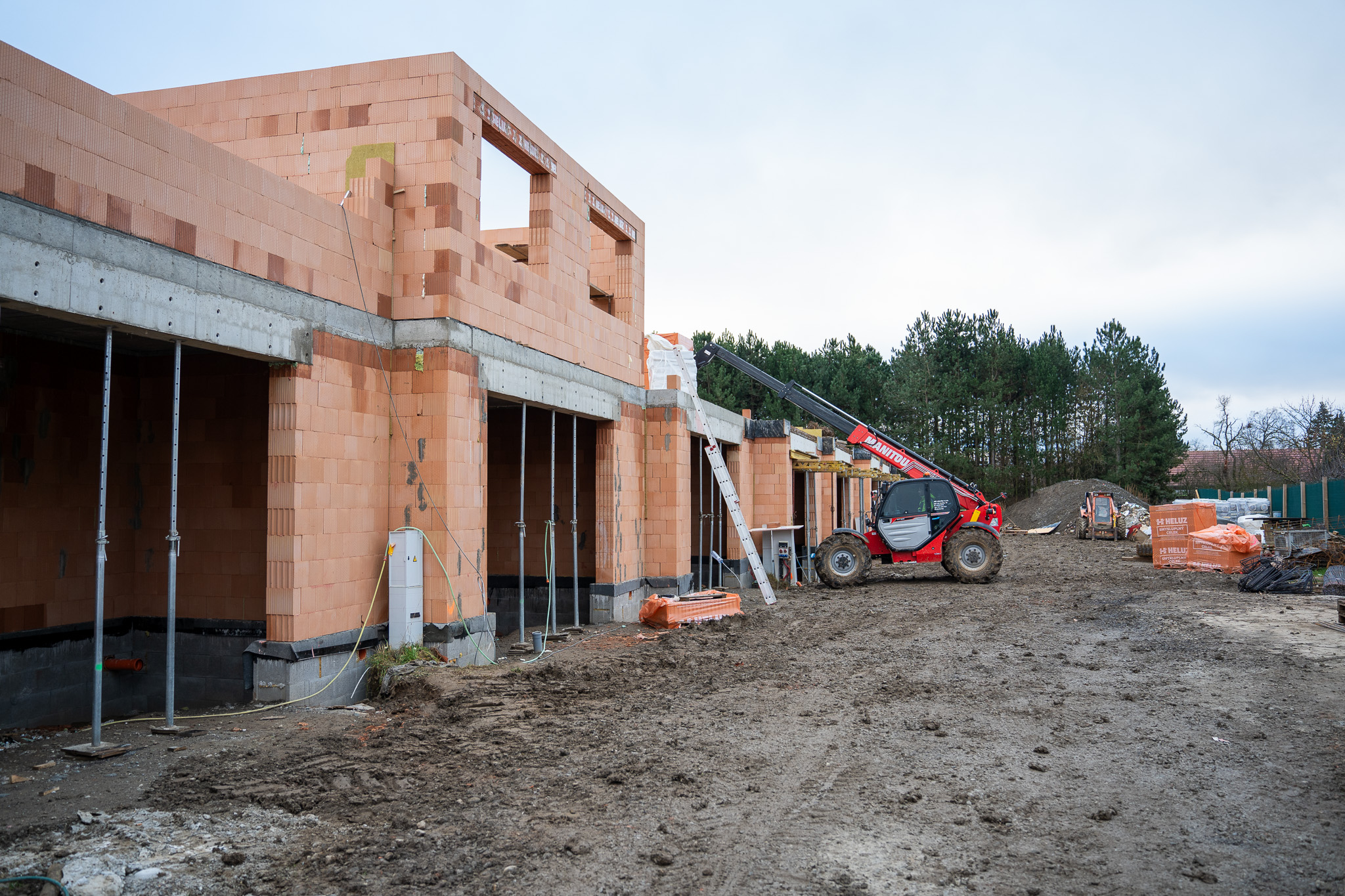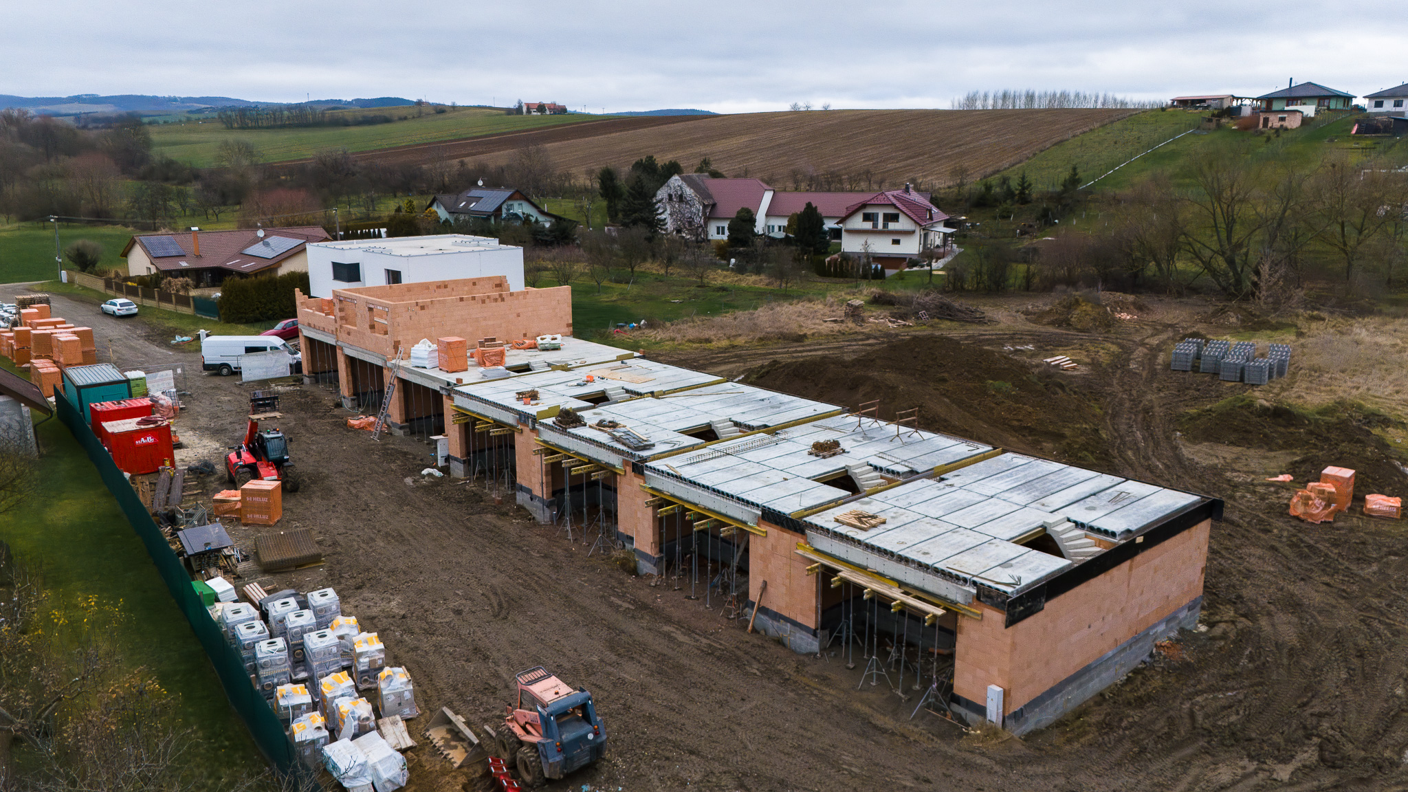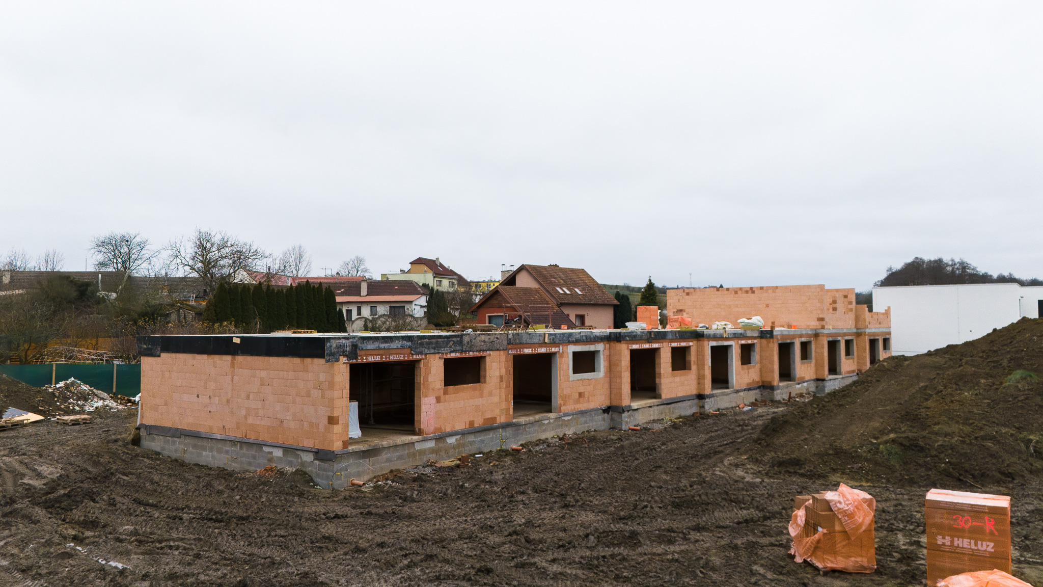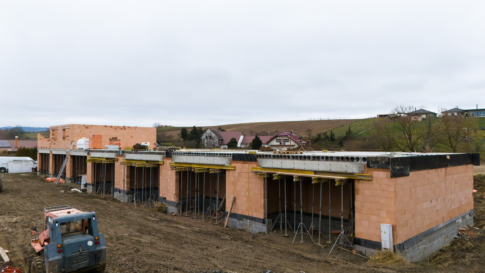 Výstavba projektu Řadové domy Sušice pokračuje i v novém roce naplno. Dokončeny jsou předpjaté stropní panely SPIROLL, vnitřní schodiště od PREFY a aktuálně probíhá vyzdívání druhých podlaží systémem HELUZ, díky čemuž domy rychle získávají své jasné obrysy. Projekt tak postupuje podle harmonogramu a opět je o krok blíže k předání budoucím majitelům.